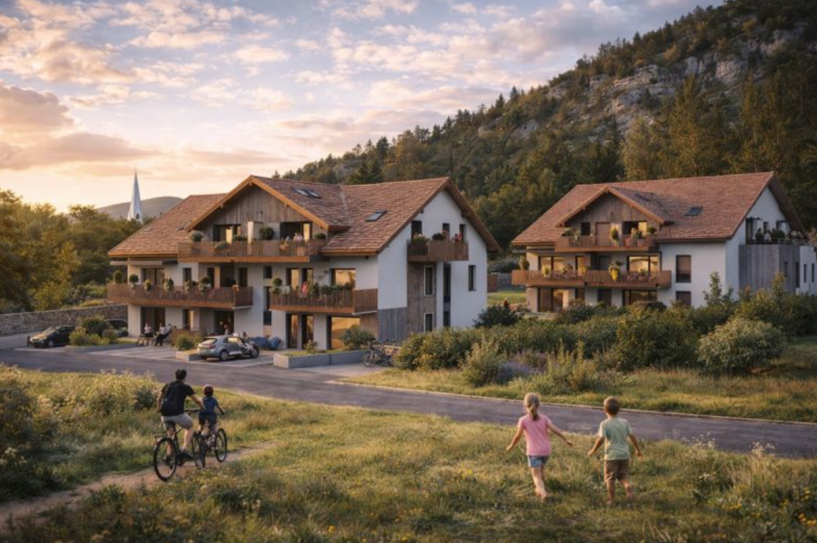 À proximité des commerces, des écoles, des plages et de la voie verte, chaque logement s'ouvre sur un balcon, une terrasse ou un jardin privatif. Certains appartements offrent des vues dégagées sur la montagne, dans un cadre naturel entre lac et reliefs.