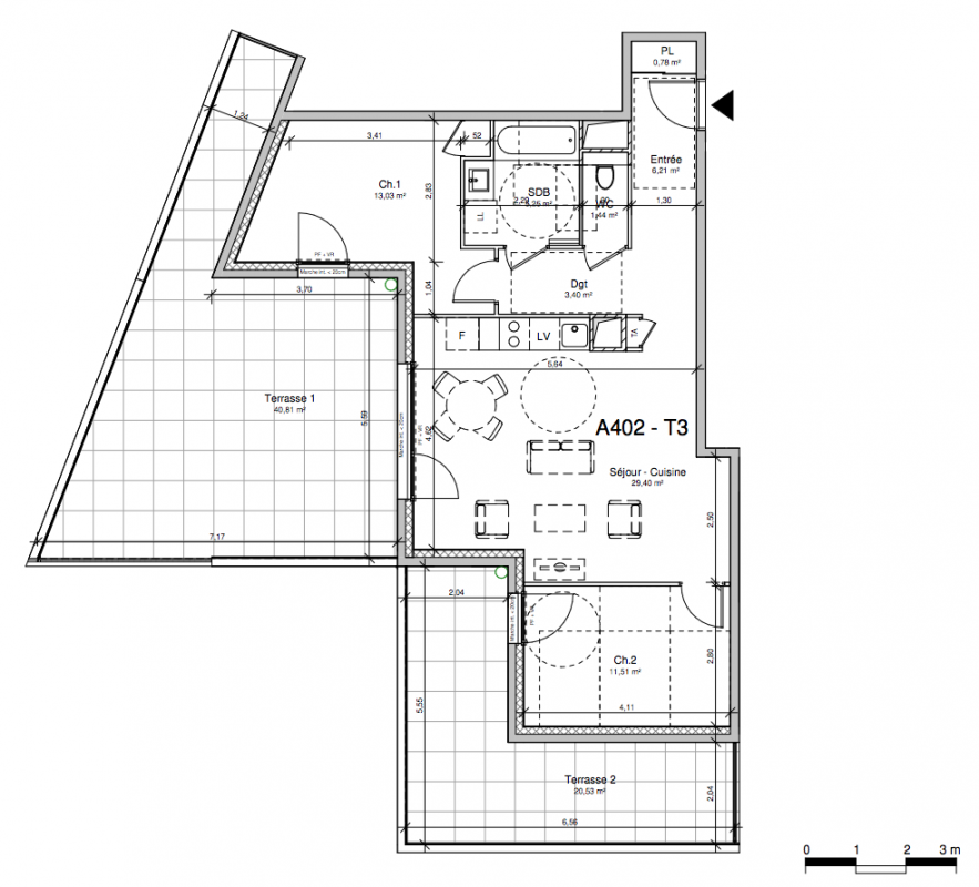 405 999€ Appt. T3 79.52m2 0-RDC