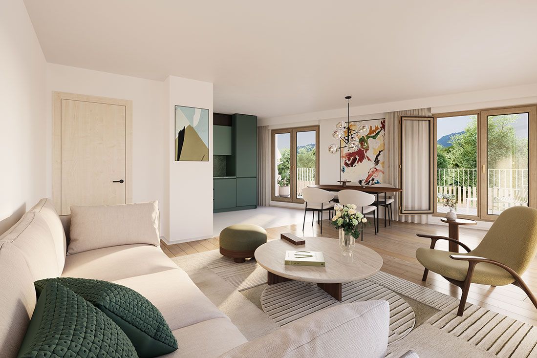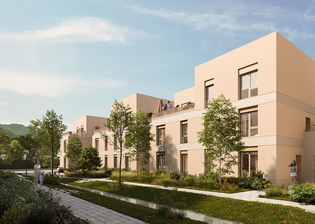La résidence Sourcea s’inscrit dans le quartier des Portes du Vercors, le long de la rue du Colonel Manhès. Elle se compose de deux bâtiments collectifs en R 5 et de logements intermédiaires en R 2 à R 3, avec une architecture contemporaine, sobre et élégante. Elle propose 36 logements en accession libre, du 2 au 5 pièces. Les appartements bénéficient de volumes généreux, d’une double orientation ou d’une configuration traversante et d’espaces extérieurs variés. Le cœur d’îlot végétalisé, pensé comme un jardin partagé, offre un lien direct avec la nature.Quartier jardin au cœur de Fontaine, avec vues sur les massifs environnants Appartements lumineux, traversants ou bi-orientés Jardin partagé avec bacs potagers, assises ombragées et noue paysagère Espaces extérieurs variés : balcons, terrasses, jardins privatifs Architecture bioclimatique et matériaux durablesAppartements : Typologies du 2 au 5 pièces Cuisine et séjour formant un espace de vie principal spacieux Isolation phonique renforcéeChauffage par géothermie Celliers pratiques en rez-de-chaussée Parking en sous-sol Grand local vélos Espaces extérieurs : Jardin partagé avec bacs potagers et mobilier convivial Noue paysagère pour la gestion des eaux pluviales Végétalisation abondante avec essences locales et non allergisantes Toitures végétalisées et panneaux photovoltaïquesÀ proximité de la résidence à pied : Arrêt de bus « Gérard Philipe » à 210 m Tram A à 650 m (arrêt Charles Michels) Pôle multimodal « La Poya » à 700 m Commerces, supermarché, cinéma et restaurants accessibles à pied Établissements scolaires à distance piétonne En train : Gare de Grenoble à 4,3 km Lyon Part-Dieu en 1h23 Paris Gare de Lyon en 3h34 via Valence TGV En voiture : Grenoble à 3 km Lyon à 110 km Genève à 155 km