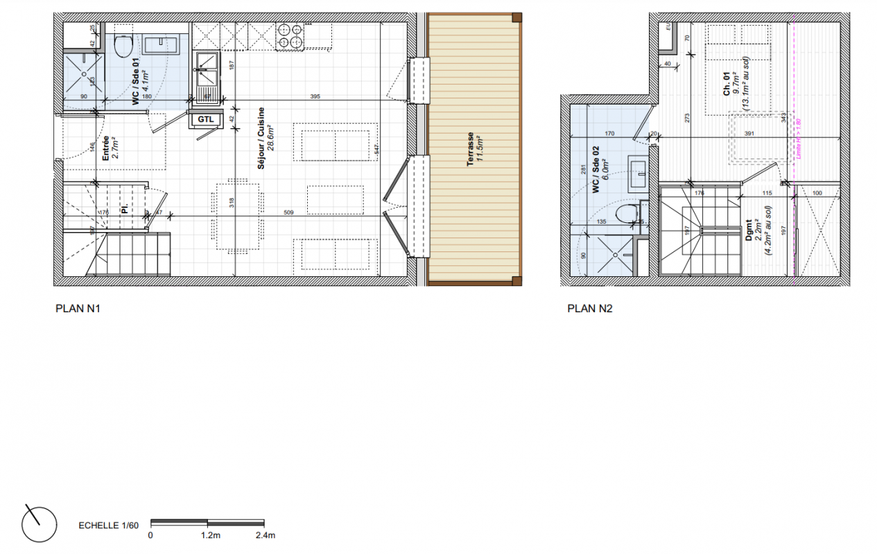La résidence Les Chalets Bajja se compose de 25 logements répartis en trois entités :Un bâtiment collectif (A) de 23 appartements du 2 au 4 piècesDeux chalets individuels (B et C)L’architecture s’inspire des codes traditionnels des chalets d’alpage : bardage bois, toitures gris ardoise, soubassements sur pilotis.Les intérieurs offrent des volumes généreux (hauteur sous plafond min. 2,50 m) et sont prolongés par de vastes balcons ou terrasses pour profiter pleinement du panorama alpin.La construction respecte la RT 2012, la réglementation acoustique et PMR.Emplacement premium : à 700 m du téléski du Reguet, au pied des pistes et proche des commercesRésidence intimiste : seulement 25 logementsBalcons et terrasses spacieux avec platelage boisArchitecture authentique et contemporaineStationnement en sous-sol, caves privatives, casiers à ski, local vélosParties privatives :Revêtements sols : carrelage grand format (Novoceram ou Porcelanosa) dans pièces de vie, parquet contrecollé bois dans chambresMurs et plafonds : peinture satinée claire, un mur séjour habillé boisSalle de bains : meuble vasque avec miroir et LED, faïence toute hauteur, baignoire ou douche avec pare-douche, sèche-serviette électriqueMenuiseries extérieures : bois avec double vitrage, volets roulants motorisés ou battants boisTerrasses et balcons : platelage bois vissé sur lambourdesPortes palières : blindées anti-effraction, serrure 3 points A2PParties communes :Hall décoratif avec carrelage 60x60, faux plafond acoustiqueContrôle d’accès Vigik vidéophone (Bâtiment A)Ascenseur 630 kg dans Bâtiment ATechniques :Chauffage par pompe à chaleur (PAC) : collectif pour Bâtiment A, individuel pour B et CProduction ECS : système mixte PAC chaudière gaz ou ballons individuelsVMC hygroréglableÀ proximité immédiate :Téléski du Reguet : 700 mCommerces, restaurants, marché local : 500 mDomaine skiable : Espace Diamant (192 km de pistes)Accès :En voiture : D1212 (3 km), A43 (45 km)En train : Annecy à 54 km