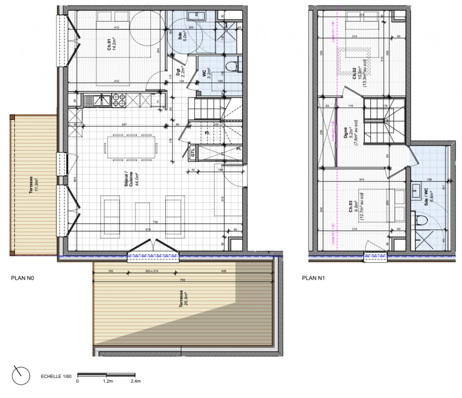 La résidence Les Chalets Bajja se compose de 25 logements répartis en trois entités :Un bâtiment collectif (A) de 23 appartements du 2 au 4 piècesDeux chalets individuels (B et C)L’architecture s’inspire des codes traditionnels des chalets d’alpage : bardage bois, toitures gris ardoise, soubassements sur pilotis.Les intérieurs offrent des volumes généreux (hauteur sous plafond min. 2,50 m) et sont prolongés par de vastes balcons ou terrasses pour profiter pleinement du panorama alpin.La construction respecte la RT 2012, la réglementation acoustique et PMR.Emplacement premium : à 700 m du téléski du Reguet, au pied des pistes et proche des commercesRésidence intimiste : seulement 25 logementsBalcons et terrasses spacieux avec platelage boisArchitecture authentique et contemporaineStationnement en sous-sol, caves privatives, casiers à ski, local vélosParties privatives :Revêtements sols : carrelage grand format (Novoceram ou Porcelanosa) dans pièces de vie, parquet contrecollé bois dans chambresMurs et plafonds : peinture satinée claire, un mur séjour habillé boisSalle de bains : meuble vasque avec miroir et LED, faïence toute hauteur, baignoire ou douche avec pare-douche, sèche-serviette électriqueMenuiseries extérieures : bois avec double vitrage, volets roulants motorisés ou battants boisTerrasses et balcons : platelage bois vissé sur lambourdesPortes palières : blindées anti-effraction, serrure 3 points A2PParties communes :Hall décoratif avec carrelage 60x60, faux plafond acoustiqueContrôle d’accès Vigik vidéophone (Bâtiment A)Ascenseur 630 kg dans Bâtiment ATechniques :Chauffage par pompe à chaleur (PAC) : collectif pour Bâtiment A, individuel pour B et CProduction ECS : système mixte PAC chaudière gaz ou ballons individuelsVMC hygroréglableÀ proximité immédiate :Téléski du Reguet : 700 mCommerces, restaurants, marché local : 500 mDomaine skiable : Espace Diamant (192 km de pistes)Accès :En voiture : D1212 (3 km), A43 (45 km)En train : Annecy à 54 km