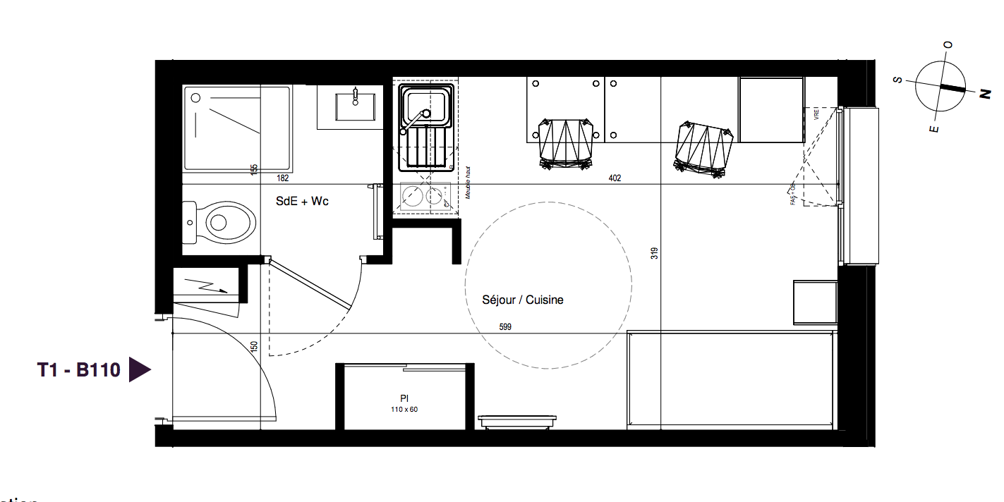 114 247€ Appt. Studio 17.91m2 1er