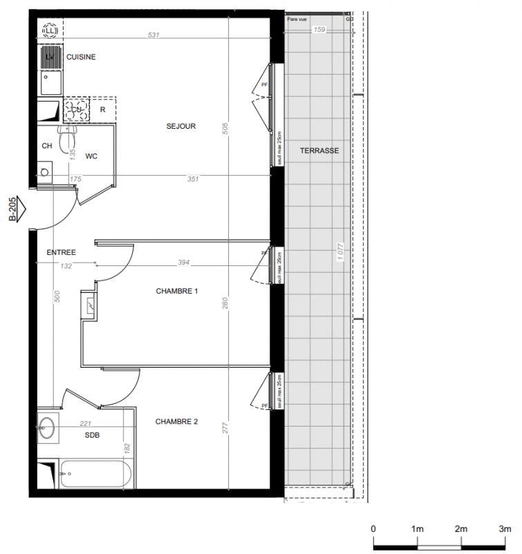 271 700€ Appt. T3 59.81m2 0-RDC
