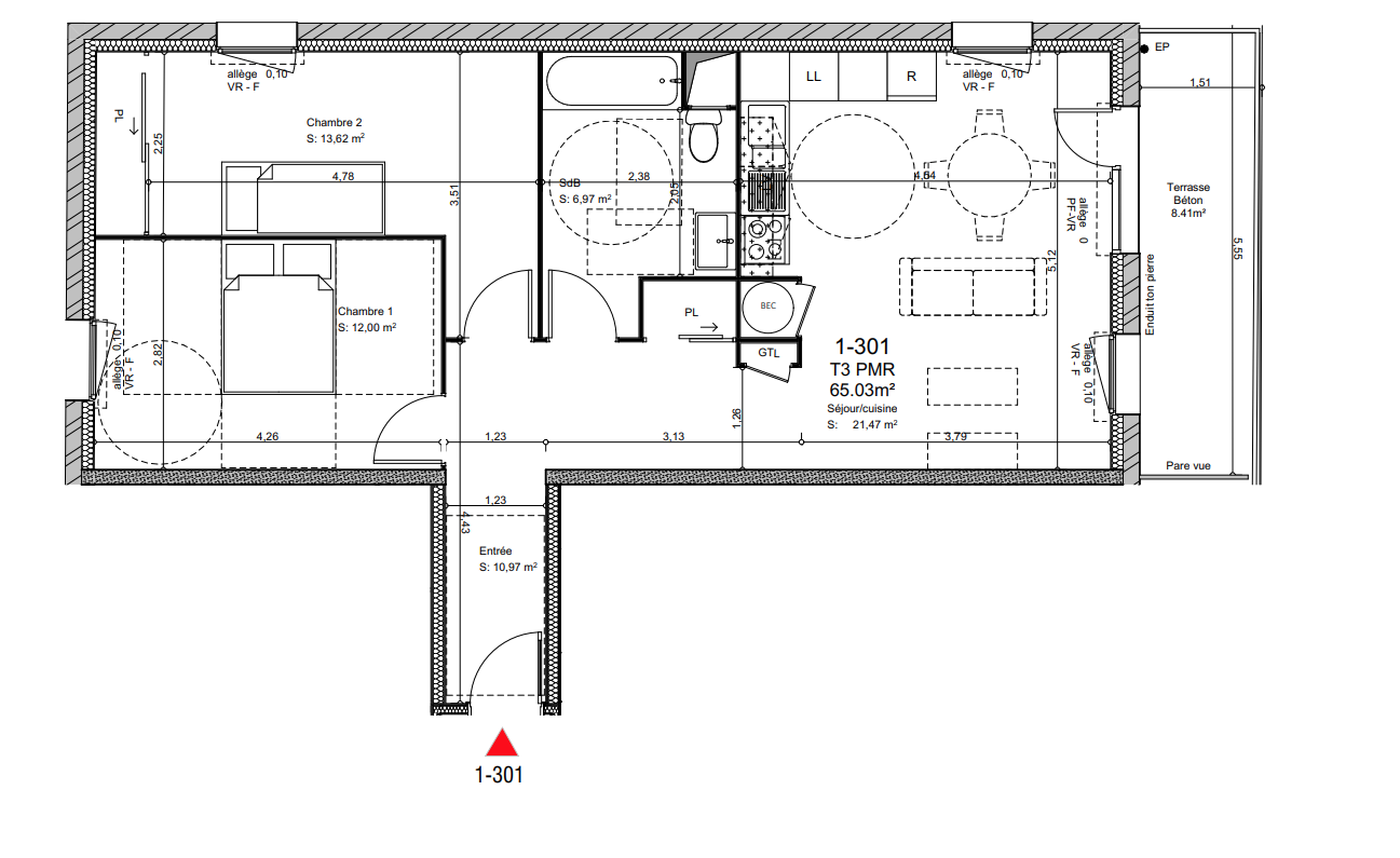 | Voir | Disponible | 167 700€ | 1101 | Appt. | T3 | 65.03m2 | 1er | Disponible | 167 700€ | Voir |