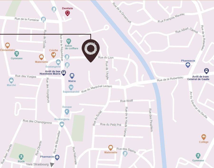Inscrivez-vous à nos journées portes ouvertes le 22 et 23 mai à Hœnheim ! Venez visiter notre appartement décoré pour vous projeter dans votre futur chez vous et profiter de notre offre exclusive du moment !Au nord de Strasbourg dans la commune d'Hœnheim, découvrez notre nouvelle réalisation située en plein centre-ville et à proximité du canal de la Marne au Rhin.Une résidence à taille humaine de seulement 2 étages offrant des appartements du studio au 5 pièces et s'ouvrant pour la plupart d'un espace extérieur : balcon, terrasse ou jardin privatif.Proches des commerces et services et à seulement 6 min en voiture de l'autoroute A4 et à 12 minutes à pied de la gare d'Hœnheim, tout est réuni pour offrir un mode de vie confortable et dynamique en ville. Contactez-vite un de nos conseillers pour découvrir tous nos logements neufs à Hœnheim et concrétiser votre projet immobilier !