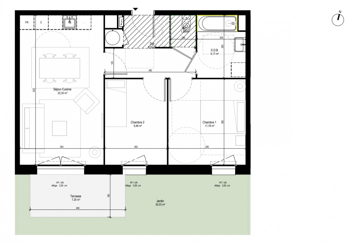 204 626€ Appt. T3 58.78m2 0-RDC