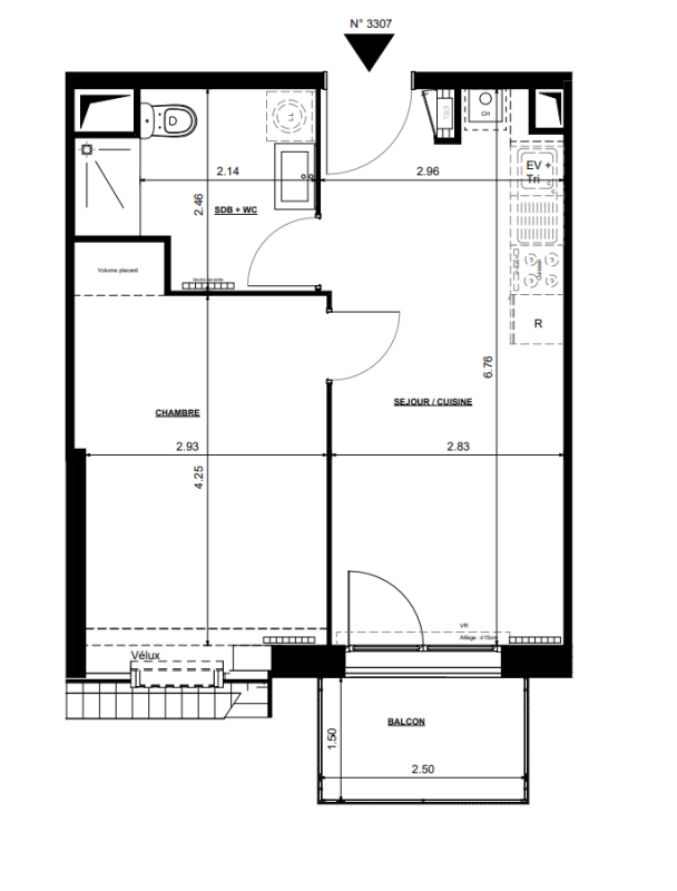 202 464€ Appt. T2 42.1m2 3ème