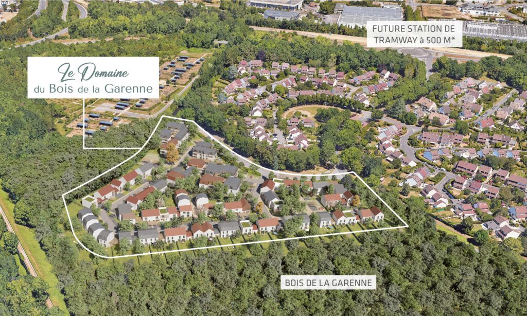 Le programme immobilier neuf Le Domaine du Bois de la Garenne est une opération d'envergure. Elle s'invite dans un secteur pavillonnaire très paisible à deux pas d'une forêt protégée constituant la limite communale avec Bondoufle. La configuration de ce programme RE 2020 lui permet de proposer une majorité d'intérieurs à double orientation.* Source : tram12-express.iledefrance-mobilites.fr