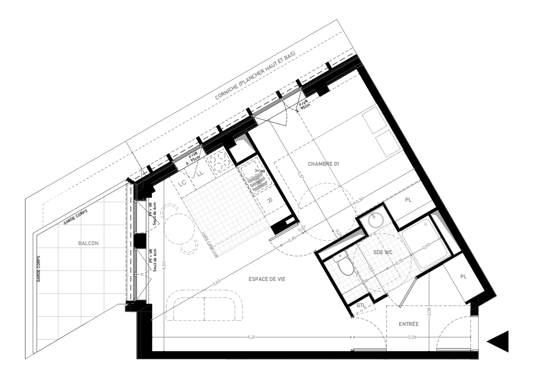 298 000€ Appt. T2 46.08m2 3ème