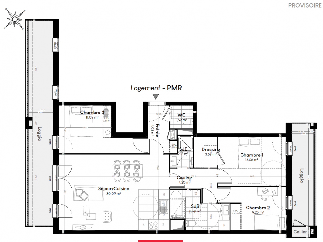 309 900€ Appt. - 60.09m2 3ème