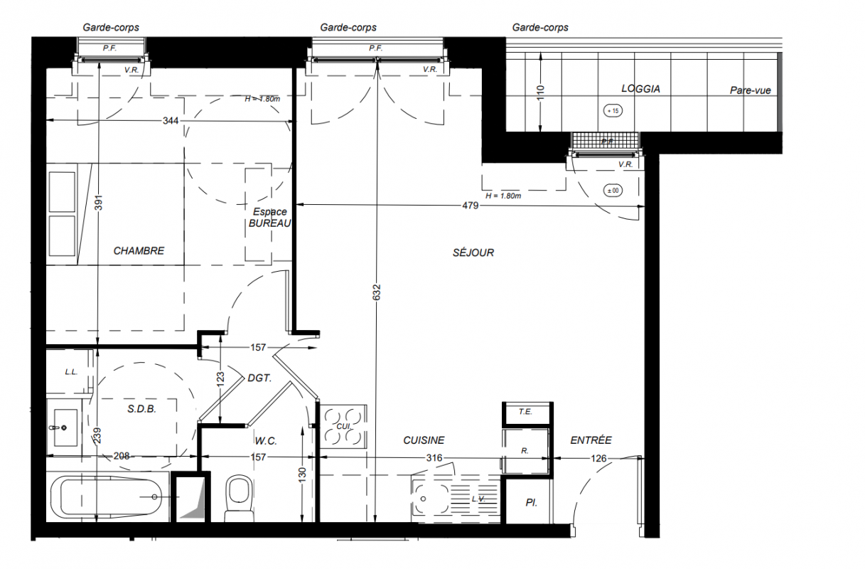 224 000€ Appt. T2 43.3m2 0-RDC
