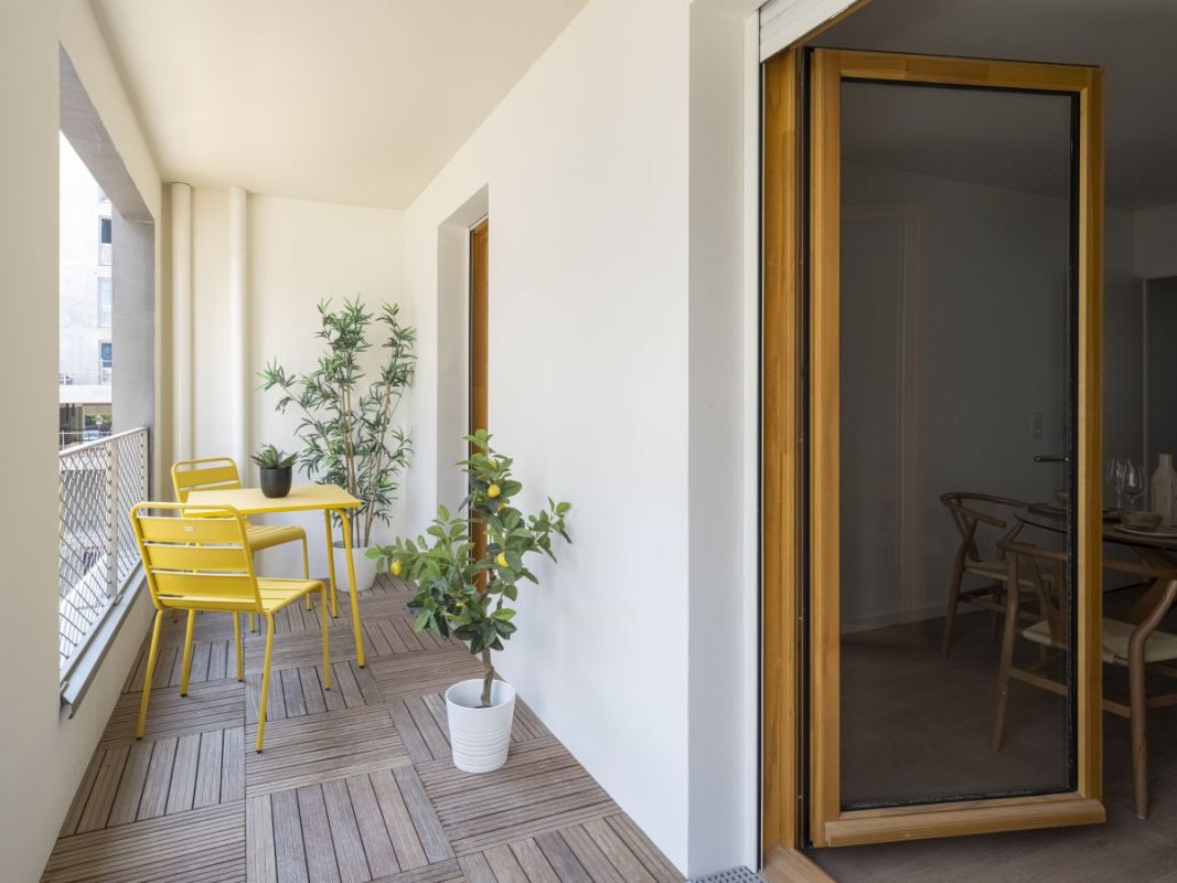 La résidence CARACTÈRE bénéficie d’un emplacement privilégié, en retrait de la rue, dans un environnement où tout est accessible à pied et où les aménagements paysagers contribuent pleinement au bien-être quotidien. Elle propose des appartements confortables du studio au 5 pièces duplex, dotés de grands espaces extérieurs et de vues dégagées, au sein d’une architecture contemporaine aux teintes sable.