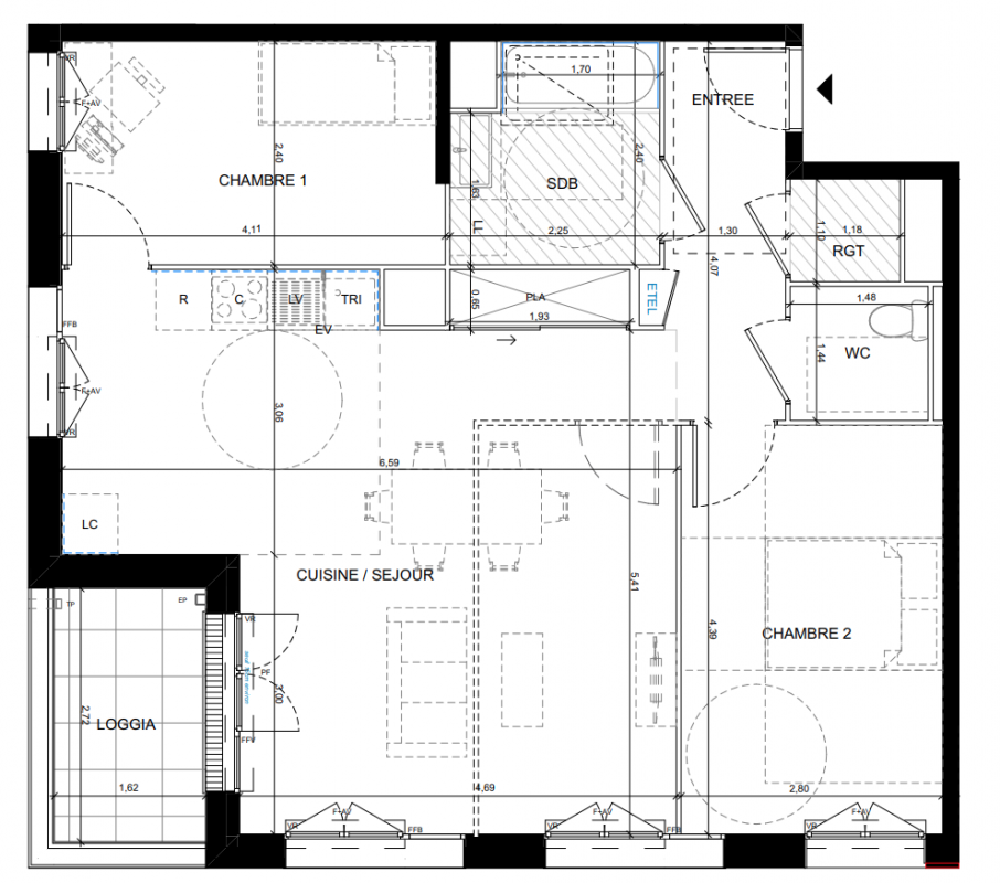 301 308€ Appt. - 60.41m2 3ème