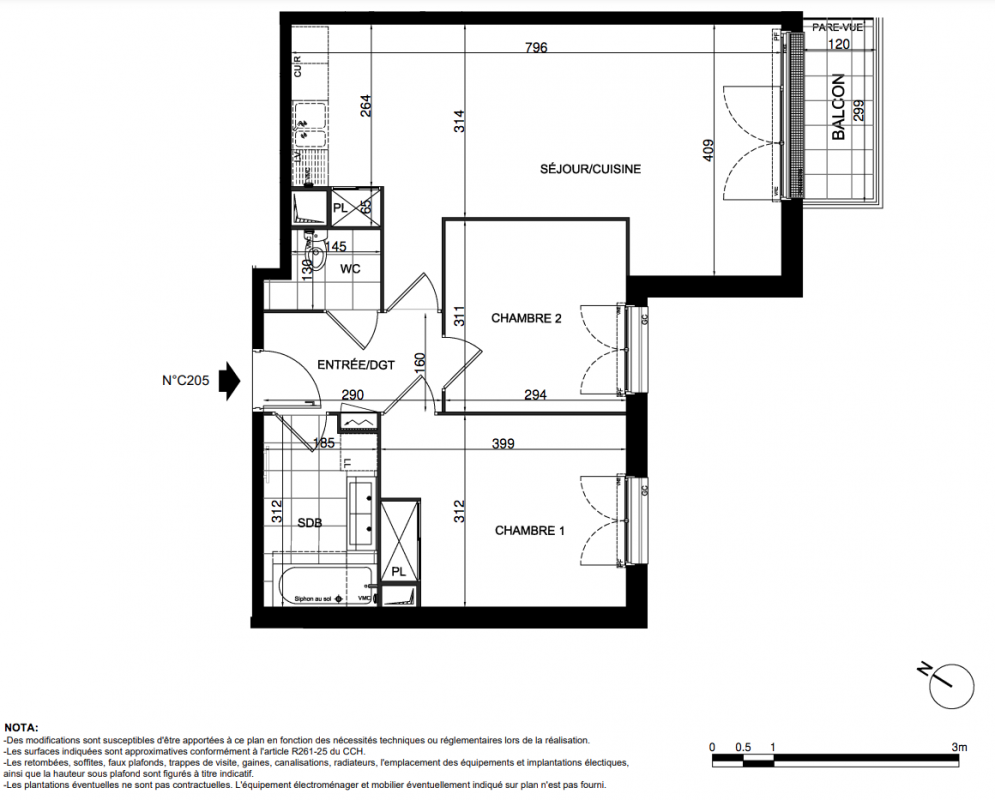 376 999€ Appt. T3 59m2 2ème
