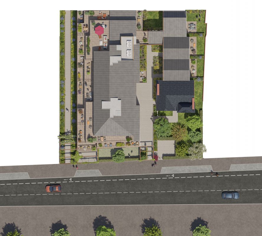 L'ensemble est structuré autour d’une venelle piétonne ouverte en journée, offrant une liaison douce entre le boulevard et le jardin public, tout en favorisant une circulation apaisée et respectueuse du cadre environnant.