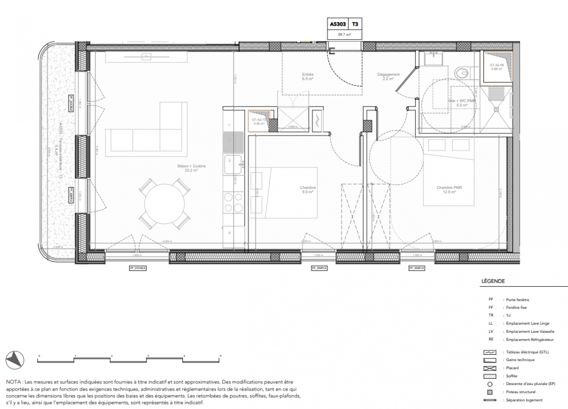 336 400€ Appt. T3 58.3m2 3ème