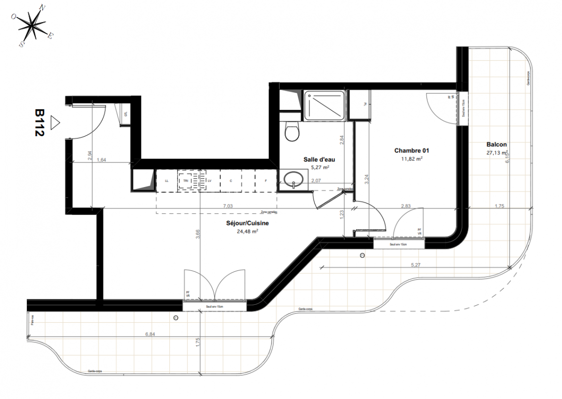 • Carrelage au sol dans les cuisines, salles d’eau, salles de bains et WC