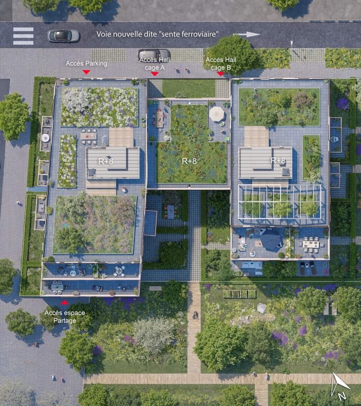 Les espaces extérieurs partagés de la résidence sont également soignés. Un jardin collectif en coeur d'îlot vous invite à la détente.