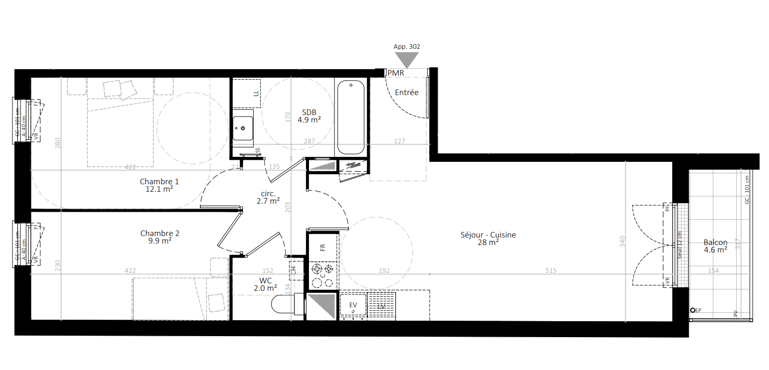 277 422€ Appt. T3 57.4m2 2ème