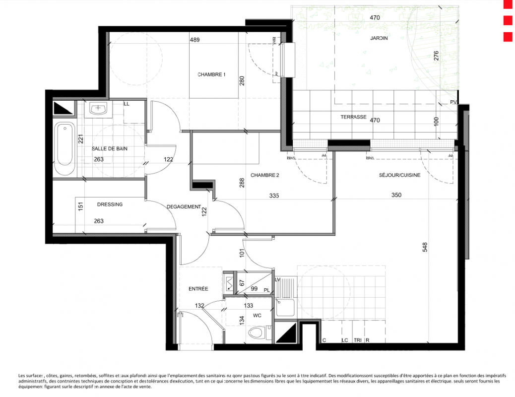 366 577€ Appt. T3 66.69m2 0-RDC