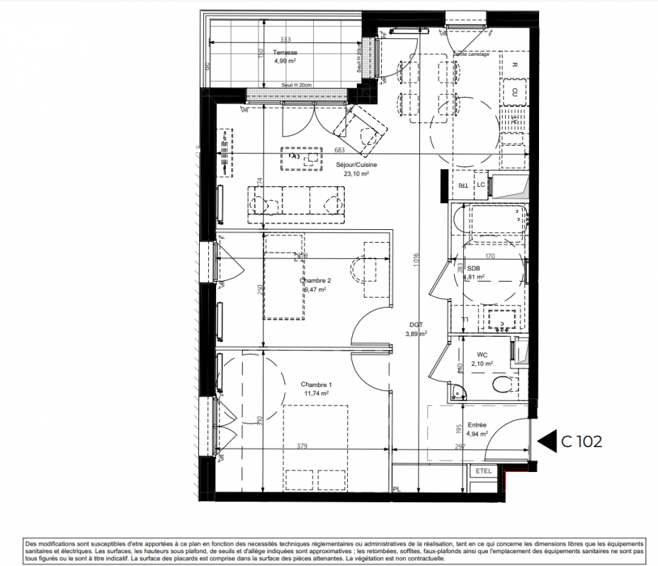 | Voir | Disponible | 402 000€ | C103 | Appt. | T3 | 62.8m2 | 1er | Disponible | 402 000€ | Voir |