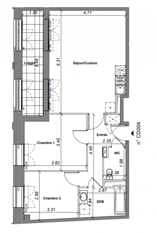 376 100€ Appt. T3 70.33m2 0-RDC