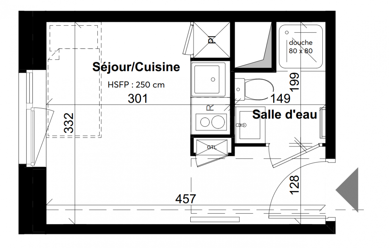 143 520€ Appt. Studio 14.13m2 3ème