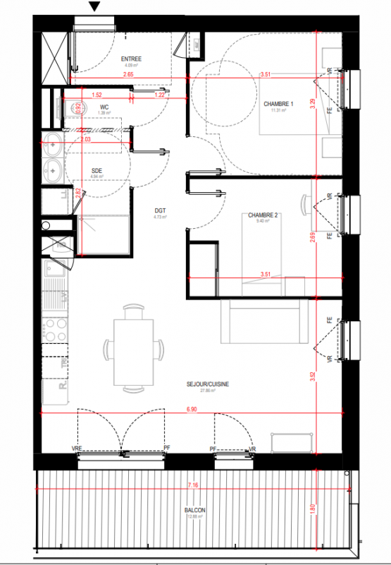 245 000€ Appt. T3 63.11m2