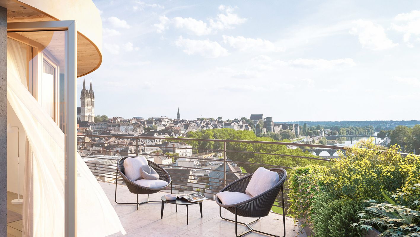 Situé au cœur d’Angers, en bord de Maine, ARBORESCENCE est un programme intergénérationnel qui rassemble une Résidence Séniors Services, un espace de co-working, une crèche et un roof-top. Son architecture moderne et audacieuse, son jardin partagé et ses vues imprenables sur la Maine et le centre historique d’Angers avec notamment sa cathédrale en font un bien unique, symbiose parfaite entre dynamisme et sérénité …