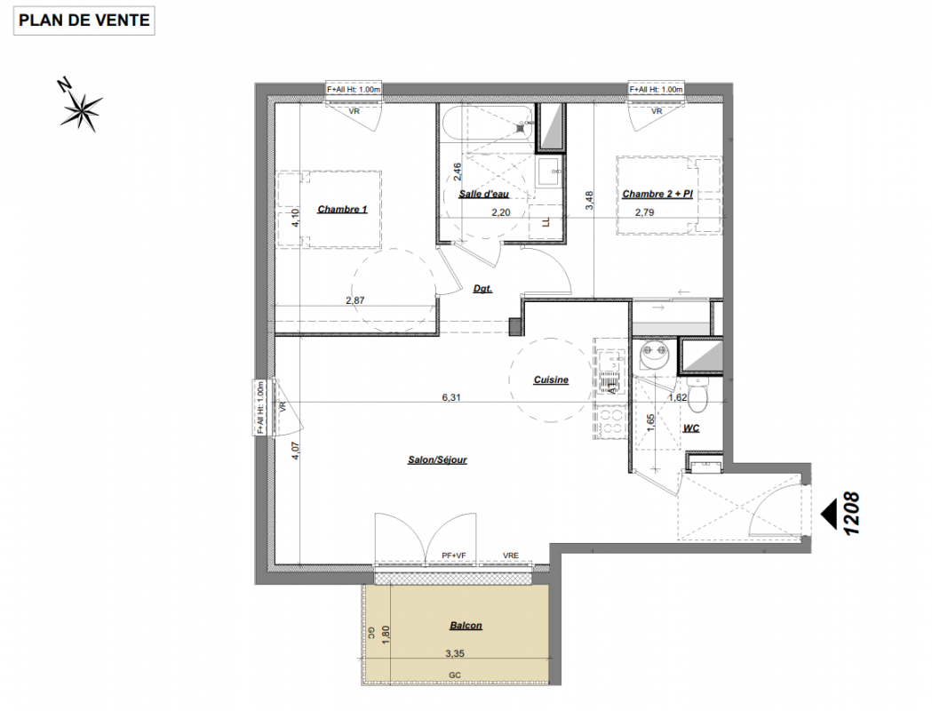 | Voir | Disponible | 191 999€ | 1202 | Appt. | T3 | 65m2 Le bon plan | 2ème | Disponible | 191 999€ | Voir |