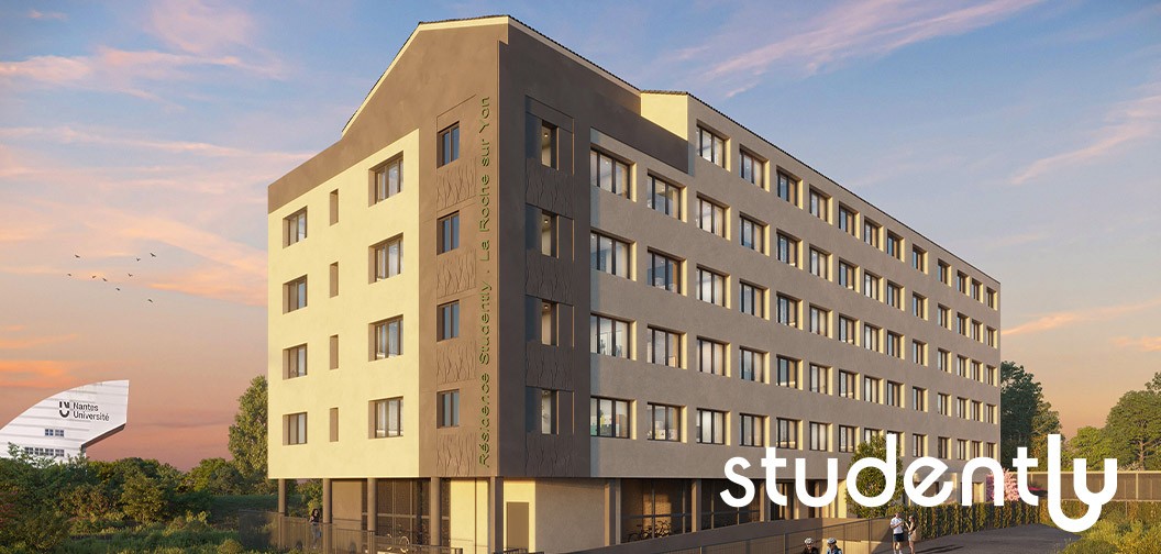 La résidence Studently La Roche-sur-Yon s’intègre harmonieusement dans son quartier tout en affirmant une architecture contemporaine et soignée. Elle se compose de 138 appartements, T1, T1 bis et T2, répartis dans 1 bâtiment en R+4+attique.