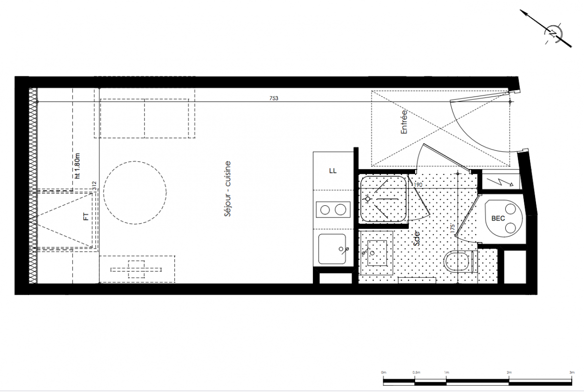 113 300€ Appt. Studio 20.2m2 0-RDC