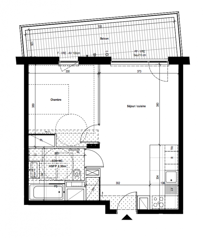 405 000€ Appt. T2 44.5m2 3ème