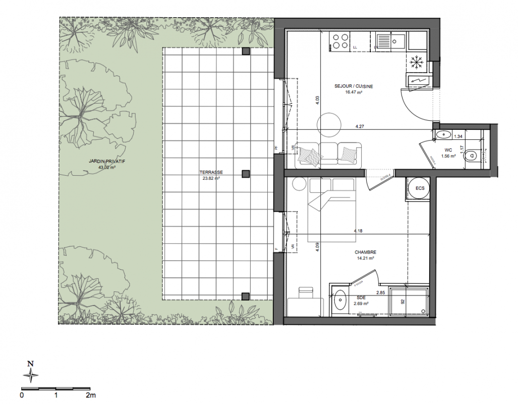 Résidence intimiste de deux bâtiments implantés dans un jardin paysager de 860 m².