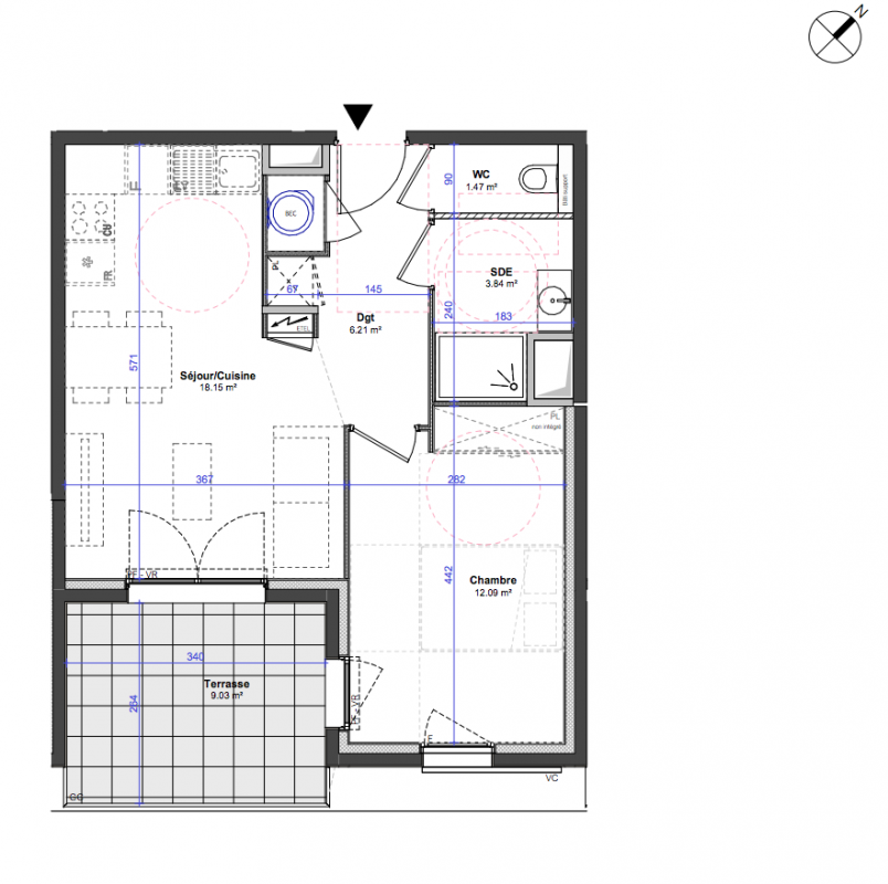 326 000€ Appt. T2 41.72m2 0-RDC