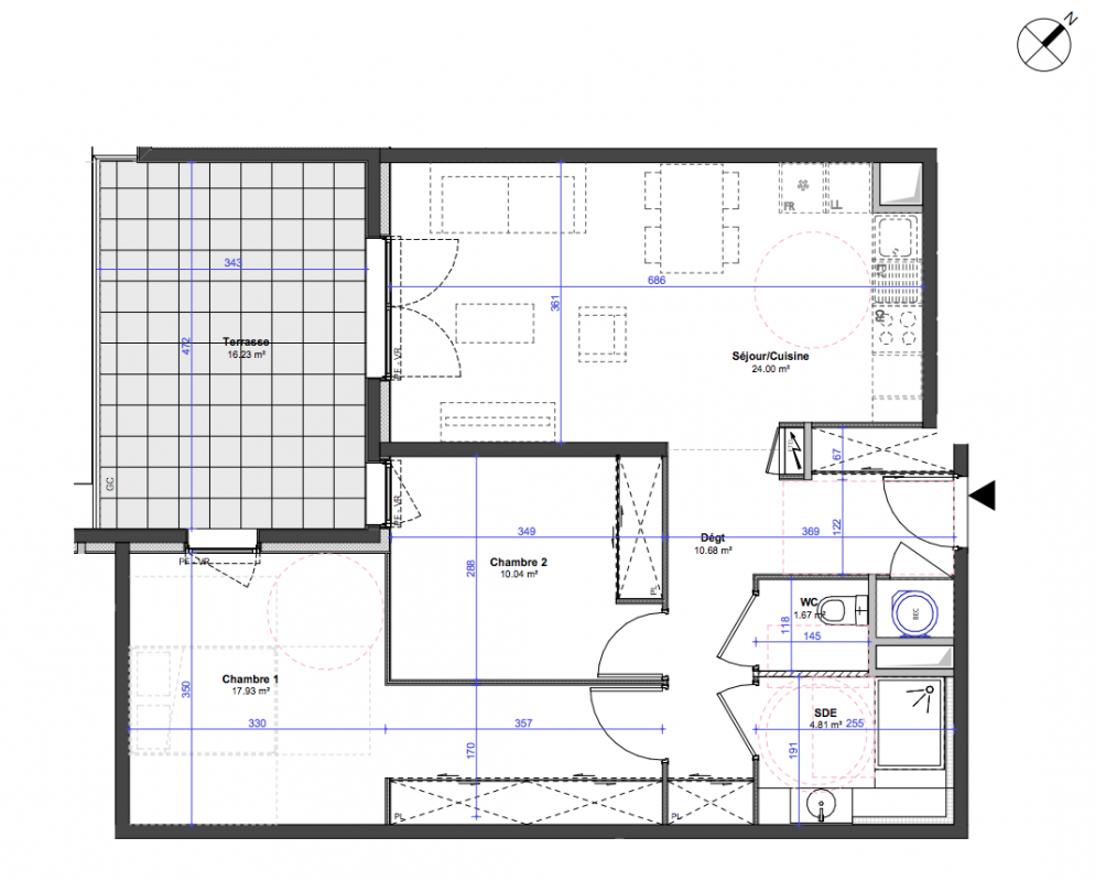 483 000€ Appt. T3 69.13m2 0-RDC