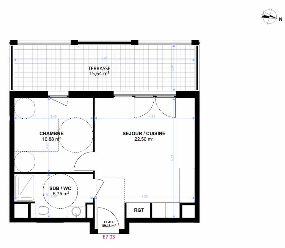 211 268€ Appt. T2 43.88m2