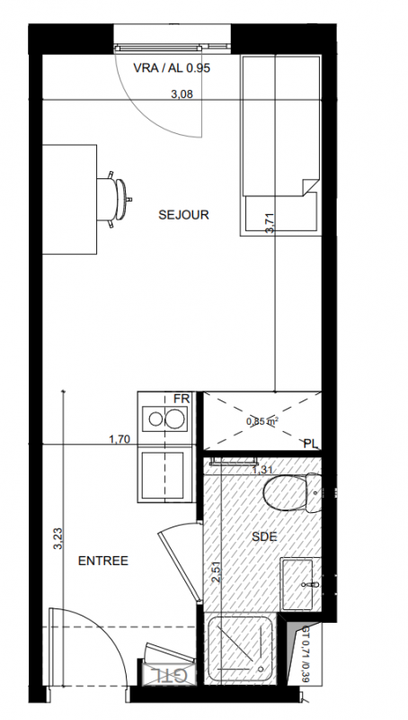118 500€ Appt. Studio 20.46m2 0-RDC